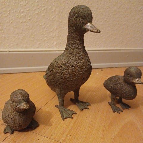 Spillende Amor i metal (tror jeg) med bronzelegering der er skallet af nogle steder.