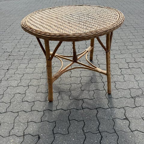 Bord i Rattan flet - Hvid - Diameter 61 cm / Højde 61 cm