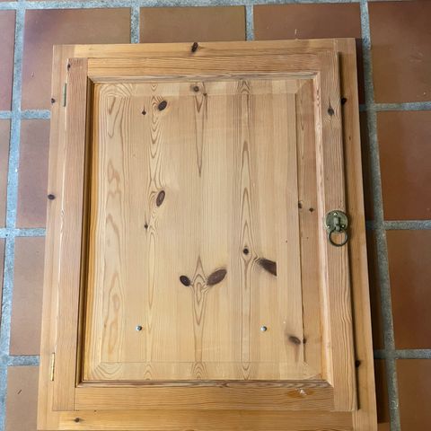 Brændeovns låge, Meget dekorativ og har ingen skader. Kan evt bruges til opbevaring af brænde eller vin i et hul rum i en mur. Bredde 30,5cm højde 48cm tykkelse 1,5cm se billeder