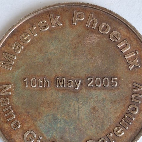 Materiale: Typisk sølvfarvet metal eller tinlegering (bronze/pewter‑type), ikke lovligt betalingsmiddel