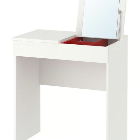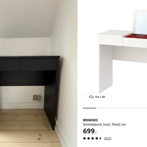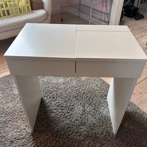 Lågen med spejlet har været brugt til opbevaring af makeup og har derfor lidt brugsspor.