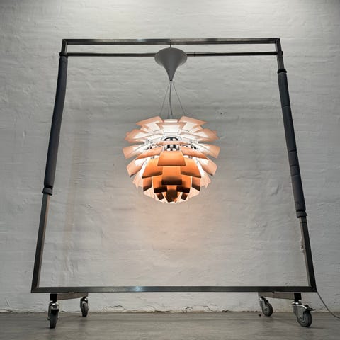 Lampen er designet af Poul Henningsen og produceret hos Louis Poulsen.
