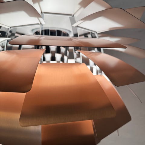 Poul Henningsen Kogle, med stel af forkromet stål og blade af kobber.