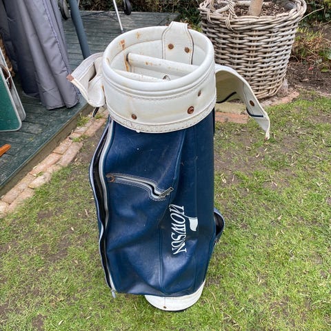 Wilson Magnolia golfbag i blå farve. Baggen har flere separate rum til køller i toppen samt flere sidelommer med lynlås til opbevaring af tilbehør som bolde, handsker og tøj. Der er bærehåndtag og strop for nem transport. Velegnet til brug på golfvogn eller trolley.