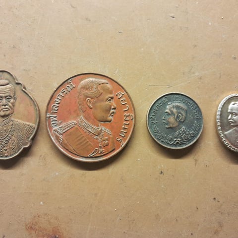 Alle tre medaljer er moderne provinsielle erindringsudgaver i basismetaller med thai og/eller engelsk inskription afhængigt af udgave.