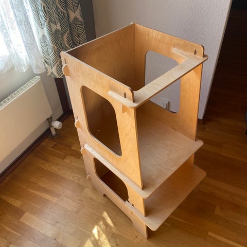 Et læringstårn, også kendt som en "køkkenhjælper", er designet til at løfte små børn sikkert op i bordhøjde, så de kan deltage i aktiviteter ved køkkenbordet.