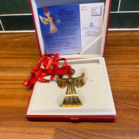Georg Jensen 1985 juleuro forgyldt med rødt bånd.
