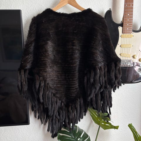 Mink cape i brun mink. Er foret og har en krave. Ældre men velholdt.