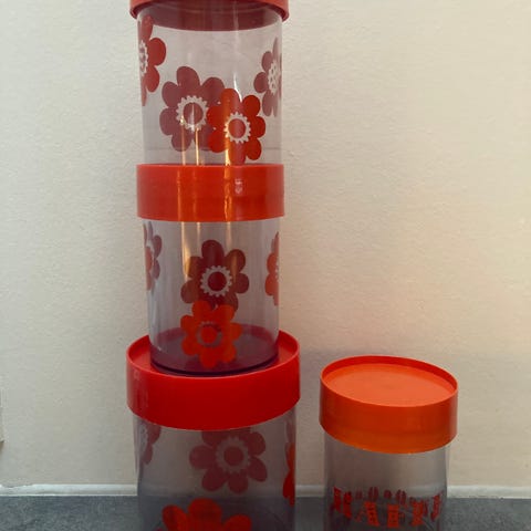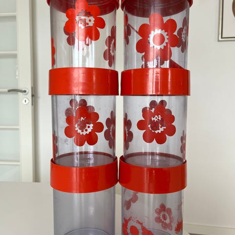 Erik Kold retro opbevarings bøtter plast rød mønstret