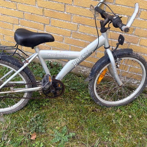 Børnecykel med 20" hjul i sølvfarvet stel. Cyklen har lav indstigning, kædeskærm, støtteben, bagagebærer, skærme og reflekser. Velegnet som hverdagscykel til børn i den størrelse, der passer til 20" hjul.