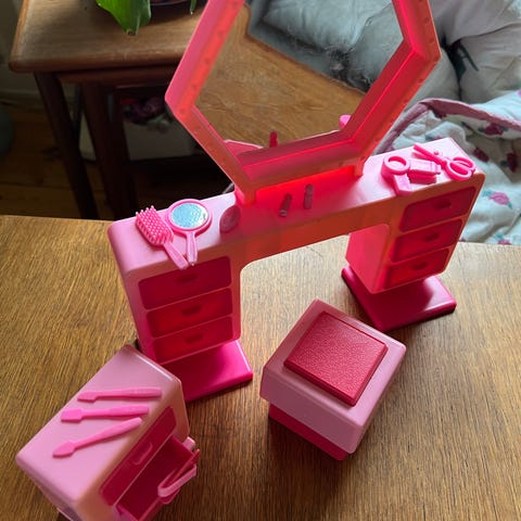 Barbie Girl sminkebord med spejl og stol .
