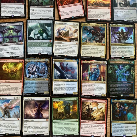 Masser af Magic kort. Kun engelske og tyske, virkelig mange kort fra sæt og hvad ChatGPT siger at der er virkelig mange gode og kort med værdi. Tror ikke der er nogle super dyre, men der skulle gerne være nogle til ca. 50 kr. Der er ca. 40 foils eller glimmer i alt er der ca. 500 + kort. Langt størstedelen er mint og resten er lige under mint