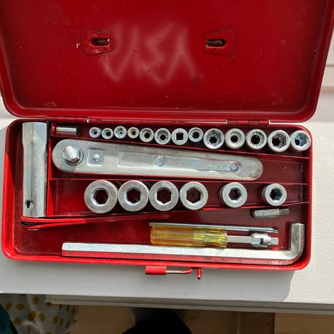 S-K Wayne 40PC Ratchet Socket Set topnøglesæt med skraldenøgle og toppe. Sættet leveres i metalæske og indeholder skraldenøgle, forlænger og et udvalg af toppe i forskellige størrelser. Plastskruetrækker medfølger som vist på billedet. Velegnet til generelle mekaniske opgaver og arbejde med bolte og møtrikker i forskellige dimensioner.(Mangler 3små toppe og 1 forlænger)