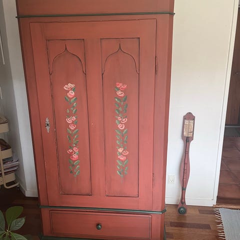 Karlekammer Skab fyrretræ med hylder og skuffe natur