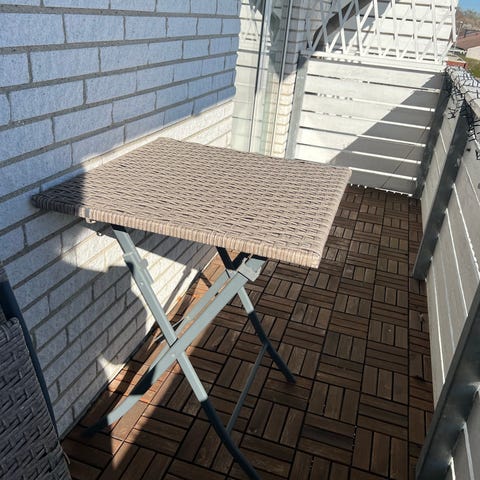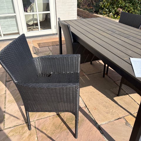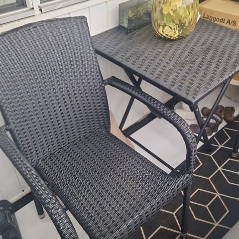 Havebord og havestol sæt i metal og flet. Kan afhentes i Ans.