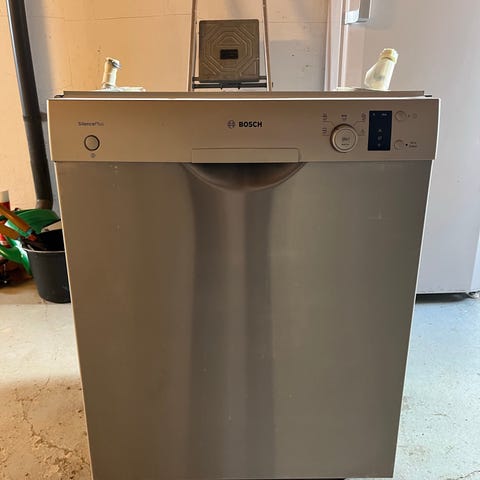 Bosch underbygget opvaskemaskine i rustfrit stål. Fronten er i stål med betjeningspanel øverst på lågen. Indvendigt er der flere kurve og bestikkurv til organisering af service og køkkengrej. Maskinen er beregnet til indbygning under bordplade i køkken.