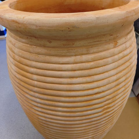 Høj hvid riflet gulvvase i keramik sælges