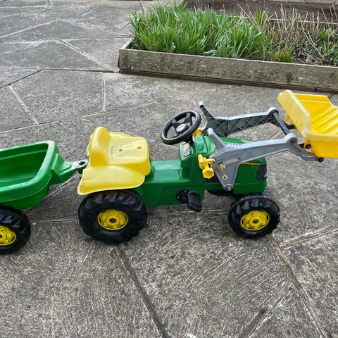 John Deere pedal traktor med vogn til børn.