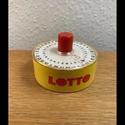 Alm sparkemaskine, men med en løs boldt i stedet for en arm.