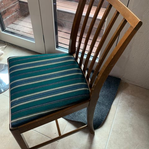 Sælger 4 spisebordsstole i massivt træ med et klassisk og tidløst design. Stolene har buet ryglæn og er gode at sidde i.