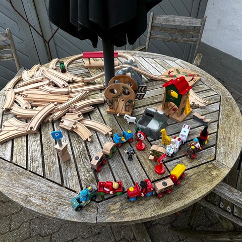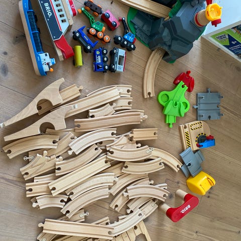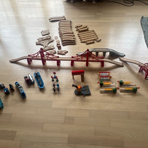BRIO togbane træsæt med tog, skinner og tilbehør. Sættet består af træs skinner, tog, vogne og forskellige stationer og bygninger, herunder blandt andet metrostation og signalhus. Der medfølger desuden broer, tunneller, figurer og små dele som skilte og træer. Togbanen kan samles på flere måder og udvides med andre BRIO dele fra samme system. Velegnet som klassisk trætogbane til leg på gulvet for børn, der kan lide tog og rolleleg.