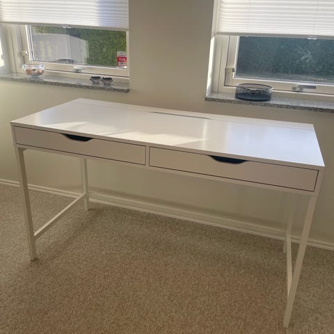 ALEX skrivebord kombinerer smart opbevaring og elegant design. Du vil elske de indbyggede skuffer, den store bordplade og kabelstyringen. Den minimalistiske stil passer i ethvert hjørne eller frit i rummet og byder på funktionalitet og stil.