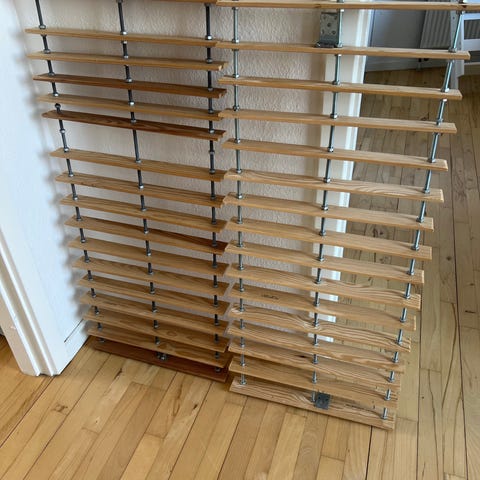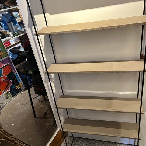 Sortlakeret metalstel/hylder i vildeg.