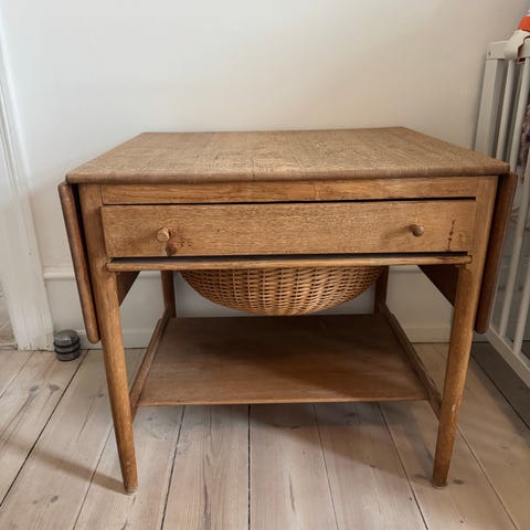 Hans Wegner sybord, massiv egetræ. Bordet er fra 1960'erne, og fremstår i god stand.