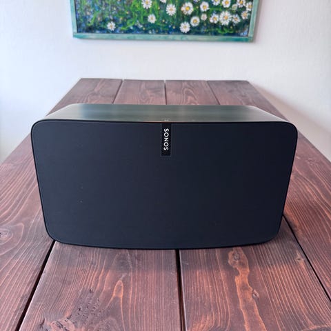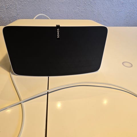 Sonos Play:5 højttaler i sort. Trådløs netværkshøjttaler til brug med Sonos-systemet. Kan anvendes alene eller parres med andre Sonos-enheder til stereo eller multirum. Tilslutning via netværk og strømstik på bagsiden. Velegnet til brug i stue, køkken eller andre rum, hvor der ønskes lyd via Sonos-platformen.