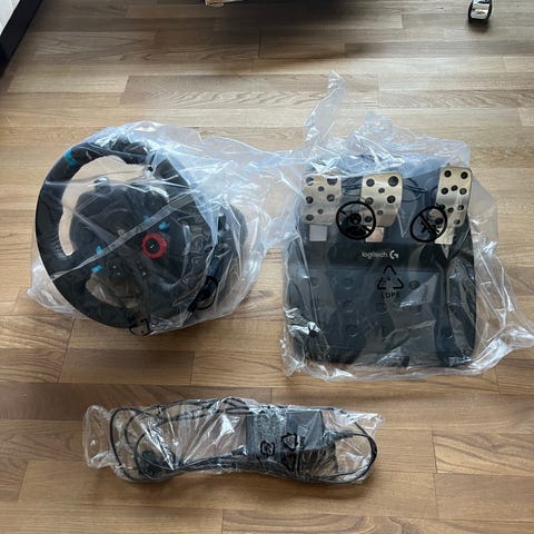 Logitech G29 racerrat med pedaler og gearskifter i sort. Sættet består af rat med indbyggede knapper og drejehjul, pedalmodul med tre pedaler (kobling, bremse og speeder) samt separat manuel gearskifter. Egnet til brug med kompatible spilkonsoller og pc til racingspil. Materialet er primært plast og metal med ratkrans i kunstlæder.