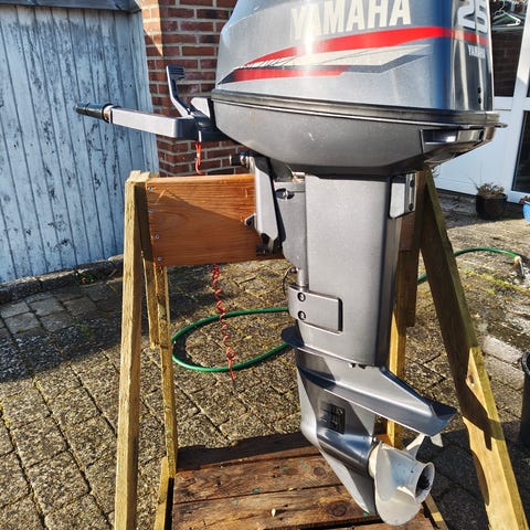 Påhængsmotoren bliver solgt med fuld service. Ny impellet, nyt gearolie, nyt tændrør og renset karburator, renset brændstofpumpe, renset brændstoffilter. Smurt og lige til at tage i brug. Der følger en 20L plast benzin tank med med ny slange og pumpe.