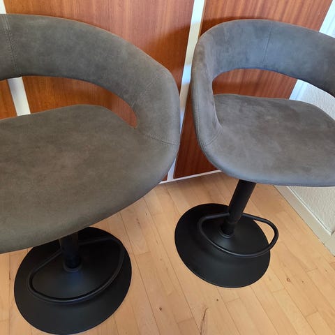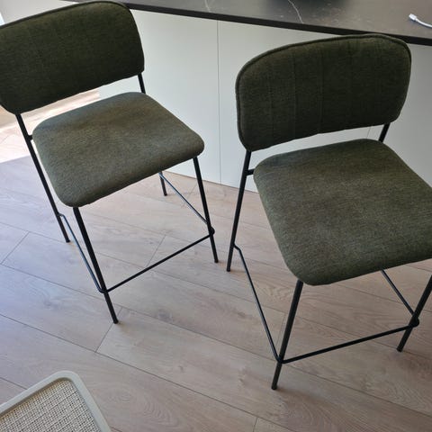 De er 65 cm fra gulv op til siddehøjde, så de passer til en køkkenø eller lignende udtræk.