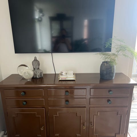 Super fed skænk i brune farver med skuffer 3 små og 4 store de 2 køre lidt stramt med virker.