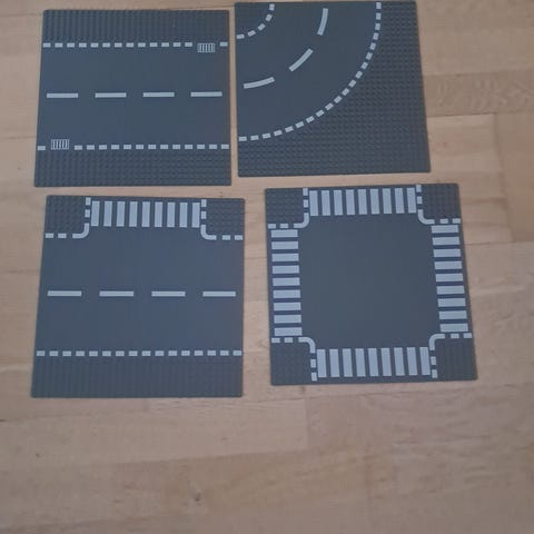 Lego vejplader til opbygning af by- og trafikmiljø i Lego-verdener. Sættet består af grå plader med trykte vejbaner, herunder kryds, sving, rundkørsel og lige vejstykker. Pladerne kan kombineres med andre Lego-klodser og -sæt til leg med biler, bybyggeri og transportscener. Velegnet til børn, der vil udvide deres Lego by med vejnet og trafik. Inklusiv to sjældne rum-plader!