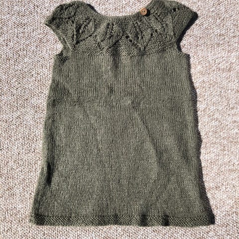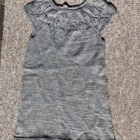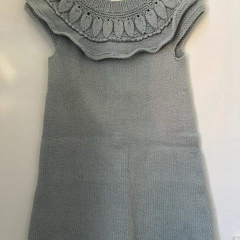 Kjole, Strik kjole i uld/acryl, Eget, str. 92, Smuk "old-school" strikket kjole i uld/acryl med broderi på bryst og knaplukning i nakke. Dejlig varm kjole.
