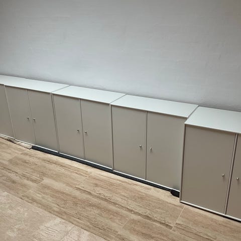 En skabssektion og en skuffesektion på hjul i farven Hokkaido rød sælges samlet