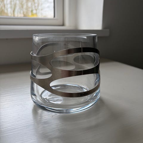 Stelton lysestage glas med stålbånd