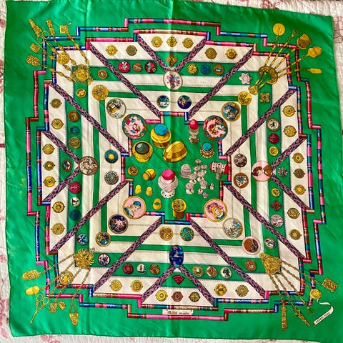 Flot rød sort creme guld HERMÉS silketørklæde 90x90 cm i god stand. Ingen pletter el. huller, mangler vaskemærke fra ikkeryger hjem .