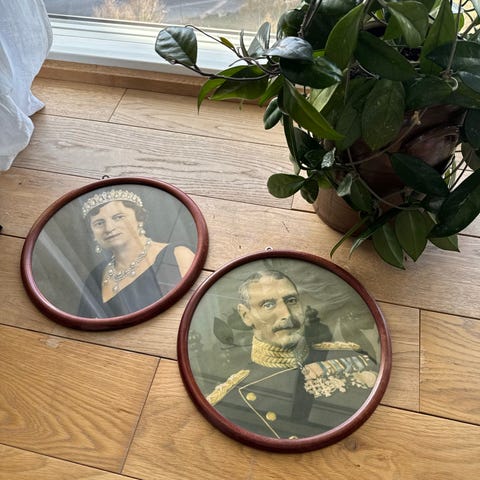 2 små runde antikke rammer med religiøse motiver 7 og 12 cm