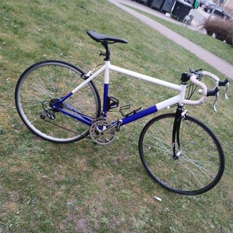 Næsten ubrugt, er en ældre cykel, som har stået her i mange år.