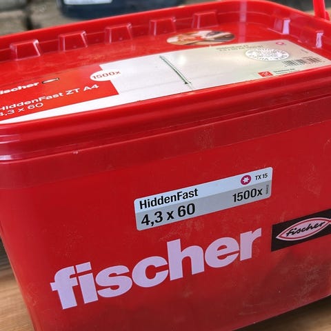 Fischer PowerFast skruer i dimensionen 5,0 x 80 mm. Også kaldet Terrasseskruer.
