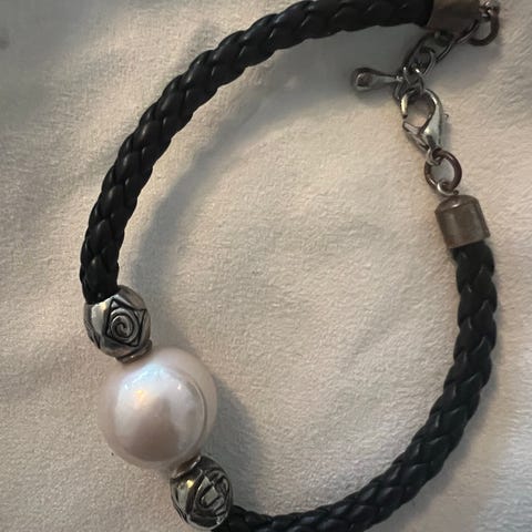 Armbåndet 3-kantet med perler hvoraf den ene er i stykker, men ses ikke koster kr. 100,00.