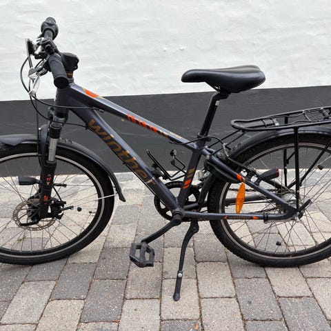 24” hjul med dæk, Størrelse på stellet er 38 cm. 3 stk. 1G SRAM Shimano gear, fodbremse og en for håndbremser.