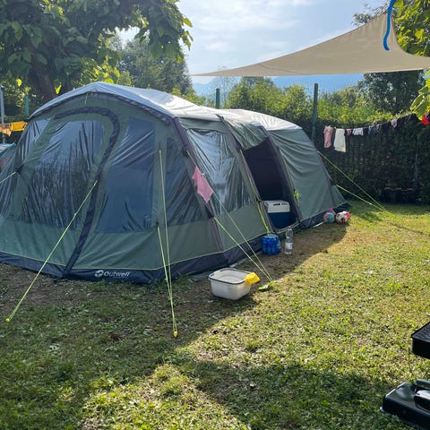 Stort rummelig telt, med plads til 6 personer i sovekabinen og en ekstra sovekabine foran til 1 person.