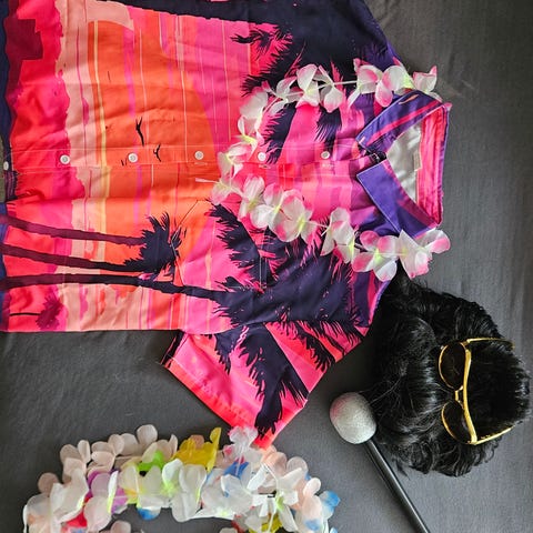 Joker udklædning sæt med bukser, jakke, slips og paryk. Parykken har været sat med voks men kan sagtens bruges igen.