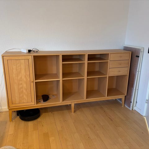 2 reoler øverst, og et dybere med låger i bunden
