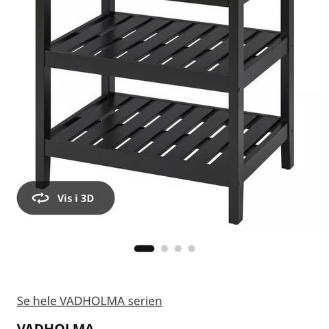 Vadholma køkkenreol fra IKEA. Ask med brun bejdse. Samlet men aldrig brugt. Måler 20 cm i bredden, 37 cm i dybden og 40 cm i højden.