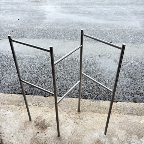 Sammenklappeligt højt tørrestativ i træ, som jeg har købt i Scotland.