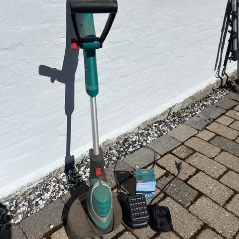 Batteridrevet model til trimning af græs og kanter i haven. Ergonomisk håndtag og teleskopskaft for bedre arbejdsstilling.