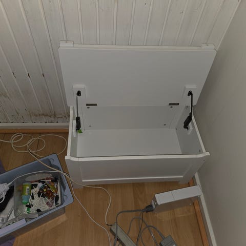 Børnebænk med opbevaring i hvid. Bænken har ryglæn og sæde, der kan løftes op, så der er opbevaringsrum under sædet. Velegnet til brug på børneværelse eller i entré til opbevaring af legetøj, sko eller andre mindre ting. Neutral hvid farve, som passer ind i mange indretninger.